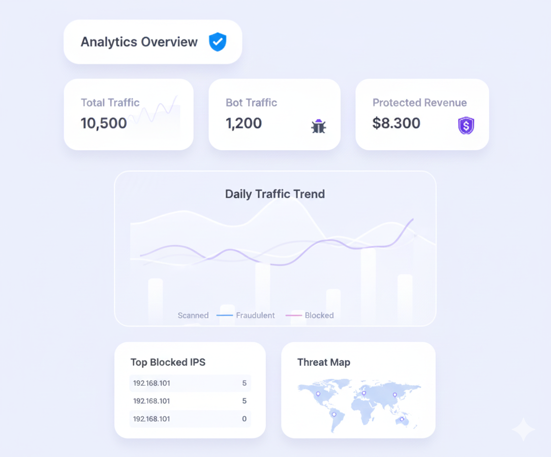 Invalid clicks and bot traffic can waste a significant portion of advertising budgets. Vyqtorix includes monitoring tools designed to detect suspicious activity and help protect your campaigns from fraudulent traffic.