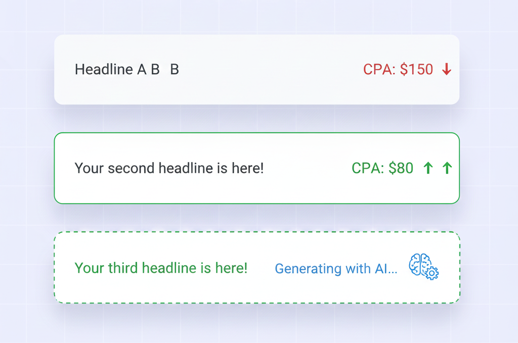 The secret to successful advertising is testing. Use our AI to automate this process, allowing it to generate and test adverts in the background for optimal impact.